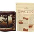 100g loose/leafy tea packed into a foil pouch with zipper lock and then into a beautifully crafted metal tin designed by Basilur.